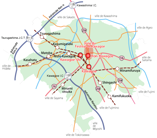 Env. 50 minutes par JR Saikyo Line Express (départ de Shinjuku station), descendre à Kawagoe station