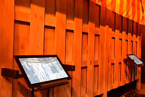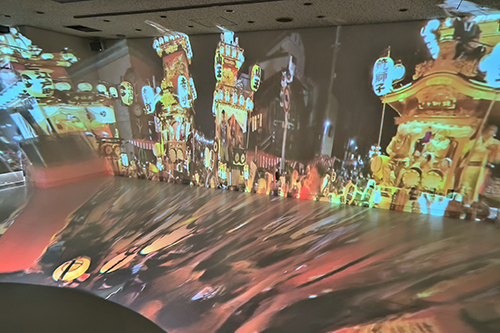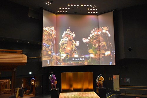 また、3面スクリーン(4.7メートル×8.7メートル)による、まつり当日の映像を約8分間上映しております(20分毎に上映)。